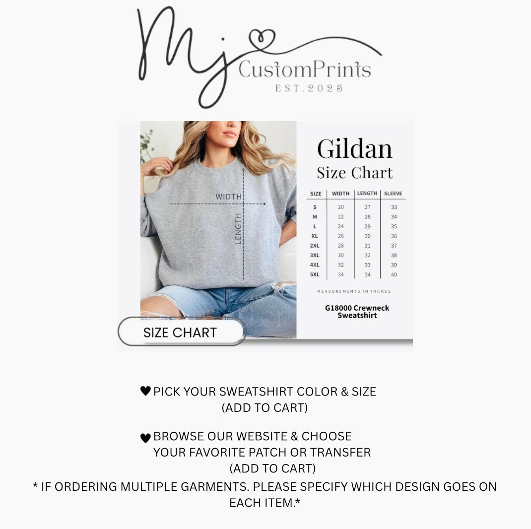 If you’re ordering multiple sweatshirts, please specify which one goes to which patch or screen print.